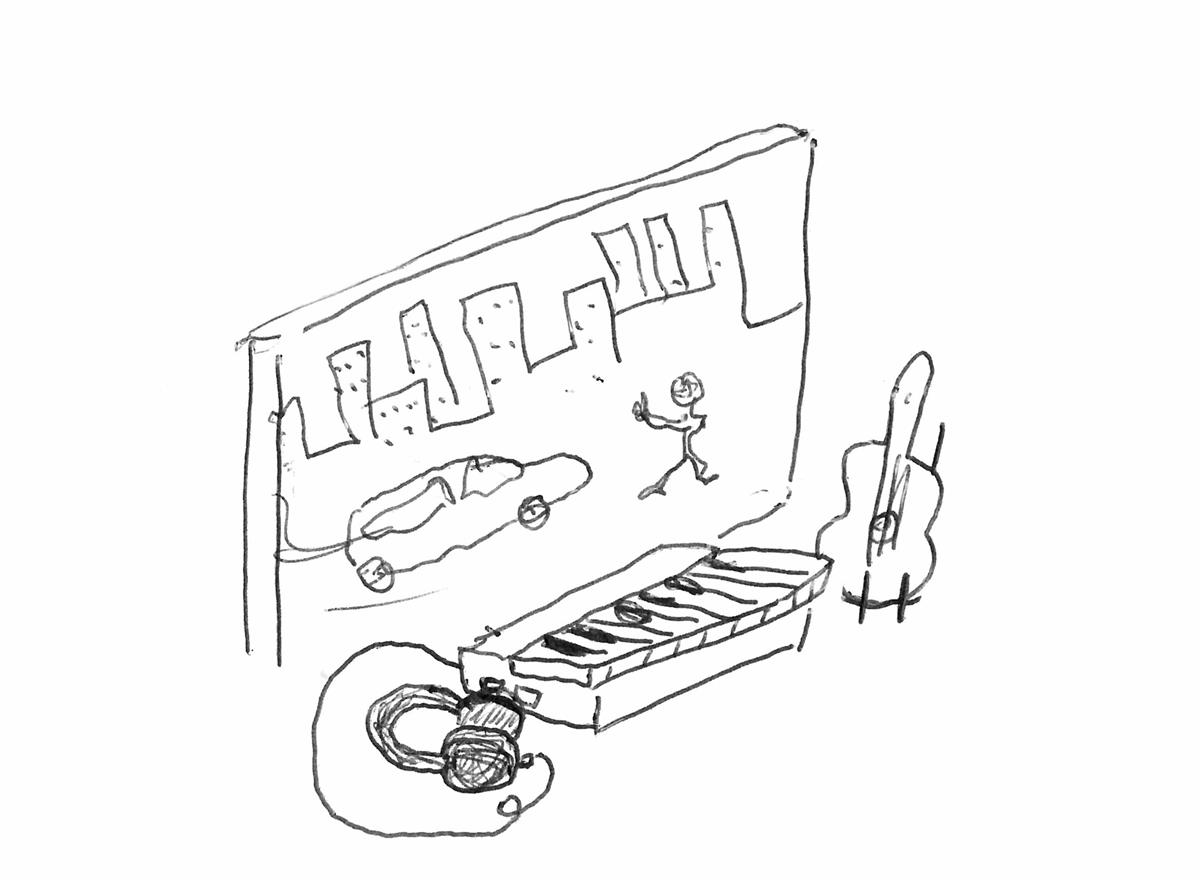 I filmmusikk jobber vi på PC, med programvaren Cubase. Vi har midi-keyboard og headset som arbeidsverktøy.